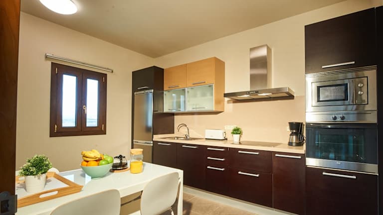 Die klimatisierten Wohneinheiten sind mit Parkettböden ausgestattet und verfügen über ein eigenes Badezimmer. Zudem bieten sie einen Flachbild-TV, einen Schreibtisch, eine ausgestattete Küche sowie eine Terrasse mit Poolblick. Die Küchen sind mit einem Kühlschrank, einem Ofen, einer Mikrowelle, einer Kaffeemaschine und einem Wasserkocher eingerichtet.