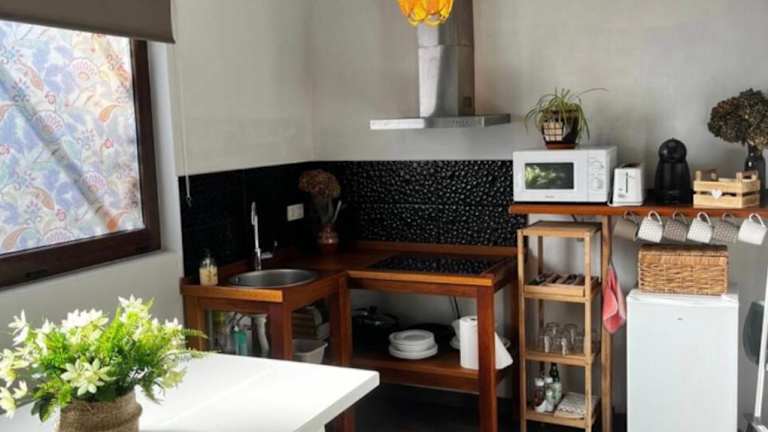 In den Wohneinheiten sind gut ausgestattete Küchen vorhanden, die unter anderem mit einem Kühlschrank, einer Mikrowelle, einem Toaster, einer Kaffeemaschine und einem Wasserkocher ausgestattet sind. Gäste haben die Möglichkeit, eigene Mahlzeiten zuzubereiten und diese auf der Terrasse zu geniessen.