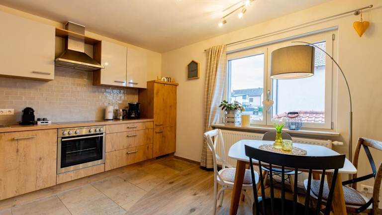 Die Ferienwohnung beinhaltet ein Schlafzimmer, ein Wohnzimmer, eine voll ausgestattete Küche mit Kühlschrank und Kaffeemaschine sowie ein Badezimmer mit Dusche. Insgesamt steht eine gepflegte und heimelige Atmosphäre zur Verfügung.