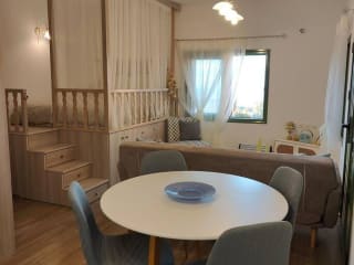 Die Unterkunft bietet Platz für Gäste in einem gemütlichen Schlafzimmer, das mit Klimaanlage und TV ausgestattet ist. Kostenloses WLAN steht zur Verfügung und sorgt für eine angenehme Verbindung. Das Ferienhaus ermöglicht einen Blick auf die Berge sowie den Garten.