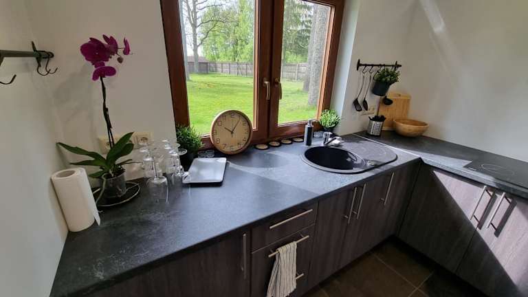 Die Lauviņu rezidence umfasst zwei Schlafzimmer, ein Wohnzimmer und eine gut ausgestattete Küche mit Kühlschrank und Herdplatte. Zur weiteren Ausstattung gehört ein Flachbild-TV. Auch ein Wasserkocher und Balkon sind vorhanden, die für zusätzlichen Komfort sorgen.