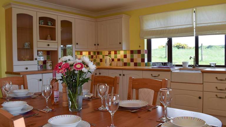 Das Ferienhaus ist ausgestattet mit einer Küche, einem Geschirrspüler sowie 2 Badezimmern mit einer Dusche und einer Waschmaschine. Handtücher und Bettwäsche werden bereitgestellt.