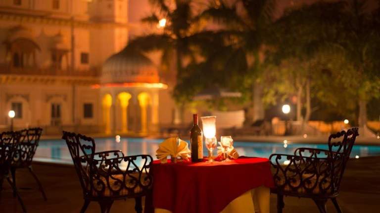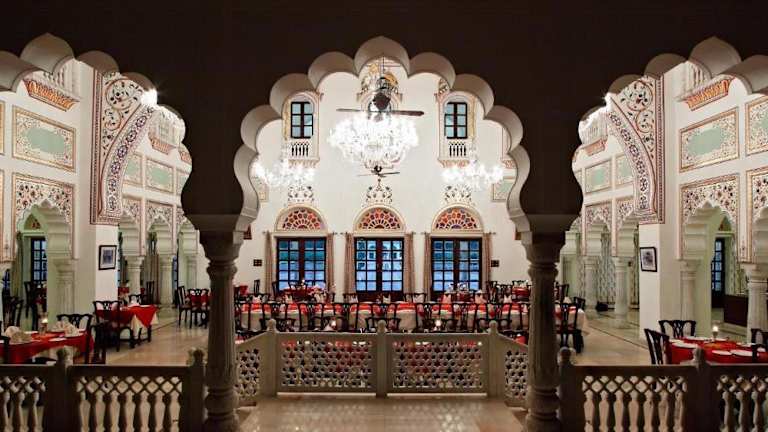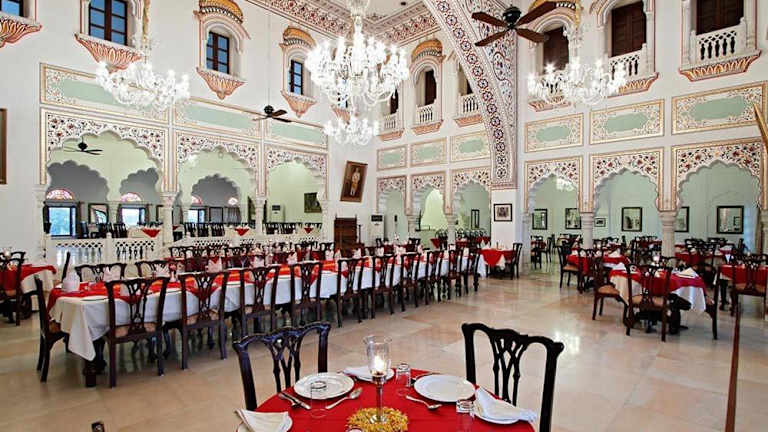 Im Restaurant des Laxmi Vilas Palace werden regionale Köstlichkeiten angeboten. An der Bar erhalten Gäste eine Auswahl an Getränken, um den Aufenthalt zu bereichern.