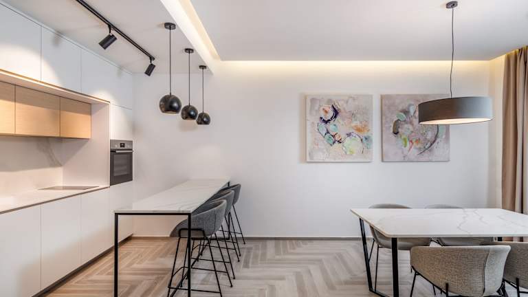 Die Zimmer sind mit einem Wohnzimmer, einer Küche und einem Badezimmer ausgestattet. Zur Ausstattung gehören eine Klimaanlage, ein Safe, eine Minibar sowie eine Hosenpresse. Der Balkon oder die private Terrasse der meisten Zimmer bietet eine Aussicht auf das Meer. Es stehen Familien- und Nichtraucherzimmer zur Verfügung.