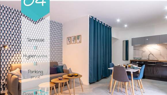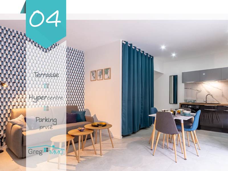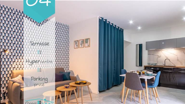 Le 04-GregIMMO-Appart'Hôtel bietet Übernachtungsmöglichkeiten mit kostenlosem WLAN und einem Flachbild-TV. Die Unterkunft umfasst eine voll ausgestattete Küche, ein Wohnzimmer sowie eine Terrasse. Private Parkiermöglichkeiten sind ebenfalls vorhanden.