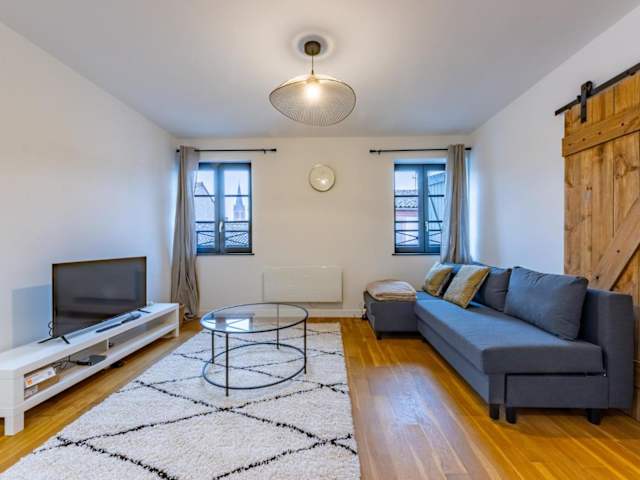 Die Ferienwohnung besteht aus einem Schlafzimmer, einem Wohnzimmer und einer voll ausgestatteten Küche, die mit einem Kühlschrank und einer Kaffeemaschine ausgestattet ist. Das Badezimmer verfügt über eine Dusche und kostenlose Pflegeprodukte. Handtücher und Bettwäsche sind ebenfalls vorhanden.