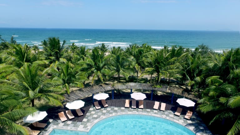 Das Hotel liegt etwa 6 km vom Ortszentrum von Hoi An entfernt und befindet sich in direkter Strandlage mit einem hoteleigenen Strandabschnitt von ca. 300 m Länge. Der internationale Flughafen Da Nang ist etwa 23 km entfernt. Die Umgebung ist ruhig und der Strand besteht aus feinem Sand. Liegen und Sonnenschirme stehen gegen Gebühr zur Verfügung.
