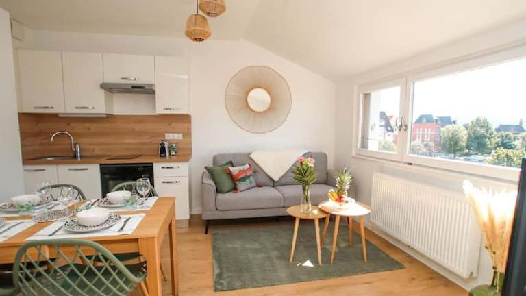 Die Unterkunft Le Belvédère Alsacien ist gelegen in Sélestat, 14 km von Hohkönigsburg und 21 km von Colmar Expo sowie 24 km von Maison des Têtes entfernt. Der nächstgelegene Flughafen ist der Flughafen Strassburg, 38 km von der Ferienwohnung entfernt.
