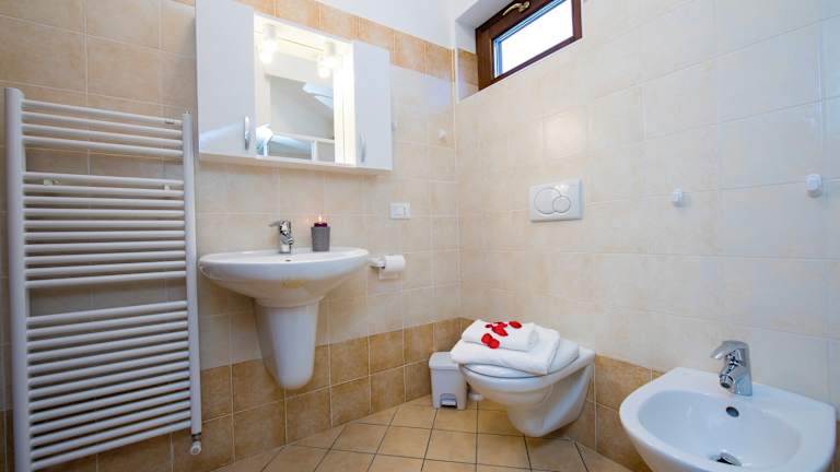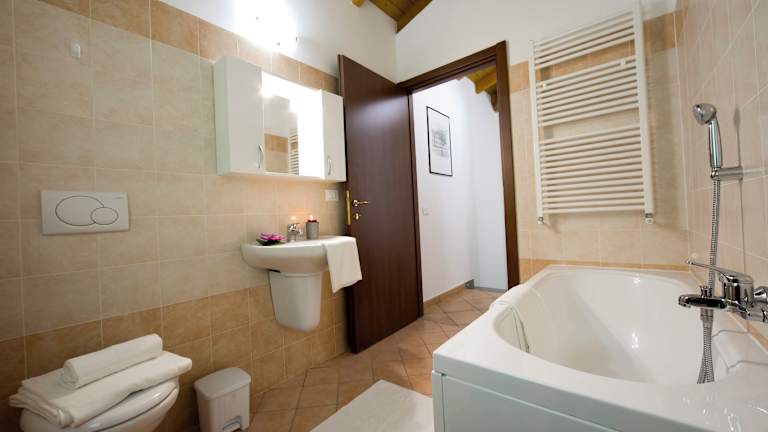 Die Villa im Le Betulle Garden verfügt über zwei Schlafzimmer, ein gemütliches Wohnzimmer und eine voll ausgestattete Küche mit Kühlschrank und Kaffeemaschine. Die beiden Badezimmer sind mit einem Bidet und einer Dusche ausgestattet. Handtücher und Bettwäsche werden gestellt, sodass Sie sich wie zu Hause fühlen können.
