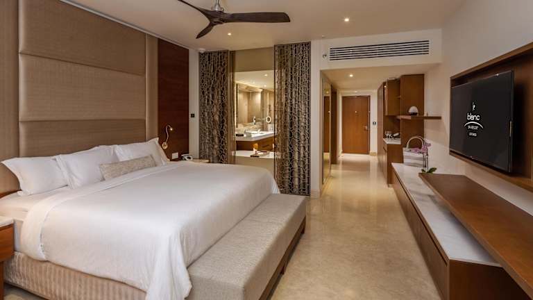 Die Zimmer sind mit Klimaanlage, Heizung und Ventilator ausgestattet und bieten teilweise einen Balkon oder eine Terrasse mit Meerblick. Zur Standardausstattung gehören ein Doppelbett oder Kingsize-Bett, ein Safe, eine Minibar, eine Tee-/Kaffeemaschine und ein Bügelset. Ein TV-Gerät, ein Radio, WiFi, ein Haartrockner, Bademäntel sowie Kosmetikartikel und Handtücher sind im Badezimmer vorhanden. Das Resort bietet Nichtraucherzimmer und rollstuhlgerechte Zimmer mit barrierefreiem Badezimmer.