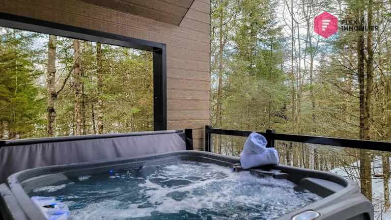 Die Unterkunft Le Bleu Bourgeois de Portneuf - Natural Elegance bietet Übernachtungsmöglichkeiten in einem heimeligen Chalet mit Annehmlichkeiten wie einem saisonalen Aussenpool, einer Gemeinschaftslounge, einer Terrasse und kostenlosem Wifi. Umgeben von schöner Natur sorgt die Unterkunft für einen erholsamen Aufenthalt.