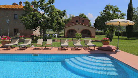 Le Caselle 26, Emma Villas bietet eine Villa mit Poolblick sowie einem saisonalen Aussenpool und einer eigenen Veranda. Die Unterkunft verfügt über einen Garten und einen kostenlosen Privatparkplatz. In der Villa sind alle Räume klimatisiert.