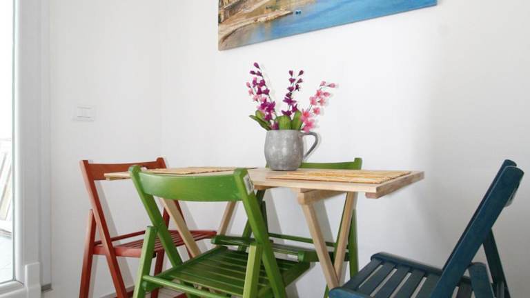 Die Ferienwohnung verfügt über eine voll ausgestattete Küchenzeile, sodass Gäste selbständig kochen können. Es stehen auch Haushaltsannehmlichkeiten wie ein Kühlschrank und eine Kaffeemaschine zur Verfügung.