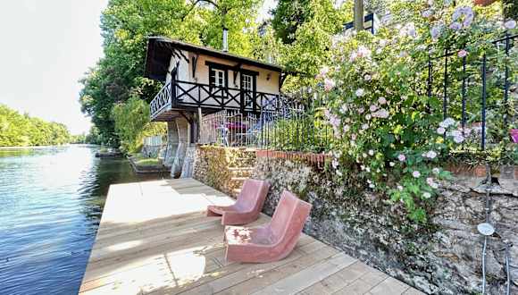 Le chalet bucolique au bord de l'eau ist ein heimeliges Ferienhaus, das Gästen einen Balkon, einen Garten und kostenloses Wifi bietet. Das Ferienhaus umfasst eine Terrasse mit Blick auf den Fluss.