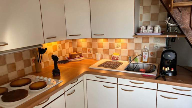 Die Ferienwohnung verfügt über ein Schlafzimmer, ein Wohnzimmer mit einem Flachbild-TV sowie eine gut ausgestattete Küche mit Kühlschrank und Geschirrspüler. Das Badezimmer ist mit einer Dusche ausgestattet. Eine Terrasse mit Bergblick lädt zum Entspannen ein.