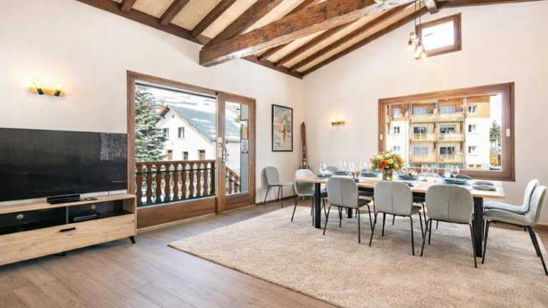 Die Zimmer sind im modernen Bergstil eingerichtet und bieten allen notwendigen Komfort. Jedes Schlafzimmer hat ein eigenes Bad und WC, ergänzt durch eine voll ausgestattete Küche in der Maisonette-Wohnung und eine Terrasse in der Erdgeschosswohnung.