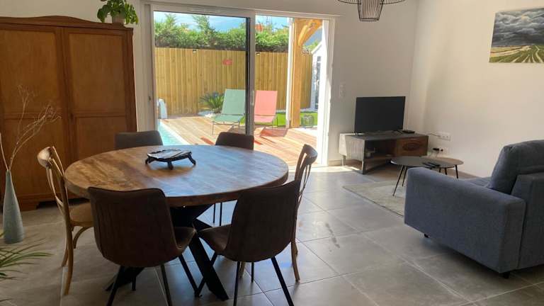 Das Le Clos des Embruns bietet eine hervorragende Unterkunft in Chassiron für einen erholsamen Urlaub. Mit einem saisonalen Außenpool und kostenfreien Privatparkplätzen können Sie sich entspannen und die Umgebung genießen. Das Ferienhaus ist mit allem ausgestattet, was Sie für einen angenehmen Aufenthalt benötigen, darunter eine voll ausgestattete Küche, ein Flachbild-TV und ein gemütlicher Sitzbereich. Der Leuchtturm von Chassiron ist nur einen kurzen Spaziergang entfernt und der Flughafen La Rochelle ist bequem erreichbar.