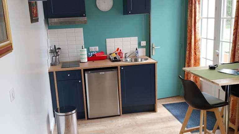 Die Ferienwohnung umfasst ein Schlafzimmer, eine Küche mit Kühlschrank und Mikrowelle, einen Flachbild-TV sowie einen Sitzbereich. Das Badezimmer ist mit einer Dusche ausgestattet. Handtücher und Bettwäsche werden zur Verfügung gestellt.