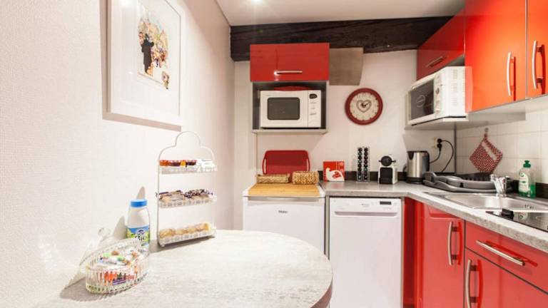 Die Apartments verfügen über eine voll ausgestattete Küche, die unter anderem einen Geschirrspüler, einen Backofen und eine Nespresso-Kaffeemaschine mit kostenfreien Kappen beinhaltet. In der unmittelbaren Umgebung sind zahlreiche kulinarische Angebote wie Restaurants und Bäckereien vorhanden.