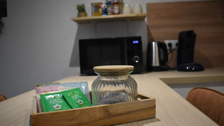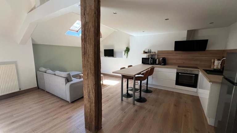 Die Ferienwohnung umfasst 1 Schlafzimmer, ein Wohnzimmer sowie eine voll ausgestattete Küche mit einem Ofen und einer Kaffeemaschine. Zudem steht ein Badezimmer mit Dusche und Haartrockner zur Verfügung. Handtücher und Bettwäsche werden bereitgestellt.