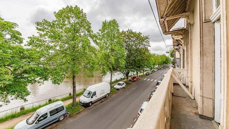 Gelegen in Laval, nur 45 km von der Abtei Saint-Pierre de Solesmes entfernt. Die Unterkunft bietet einen Blick auf die Stadt und den Fluss.