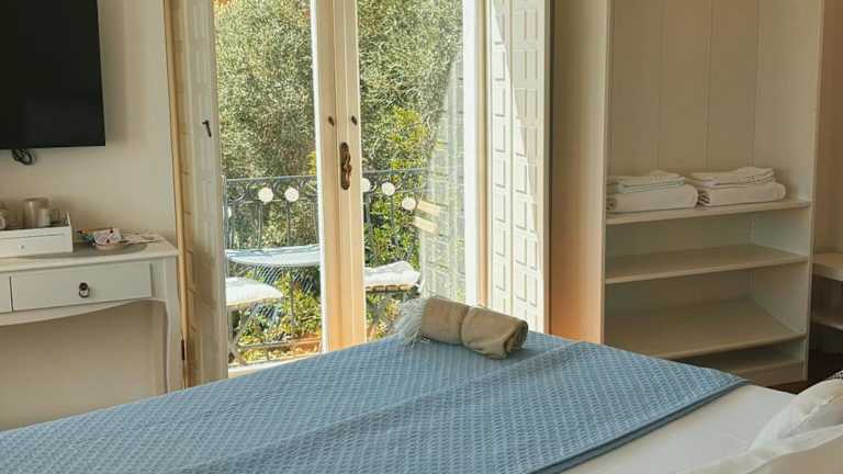 Die Gästezimmer sind ausgestattet mit Klimaanlage, einem Flachbild-TV mit Satellitenkanälen, einem Kühlschrank sowie einer Kaffeemaschine. Jedes Zimmer verfügt über ein eigenes Badezimmer mit Dusche, Bidet, Haartrockner und Schreibtisch. Ausgewählte Zimmer sind mit einer Terrasse ausgestattet, während andere zusätzlich Meerblick bieten. Bettwäsche und Handtücher sind in allen Zimmern vorhanden.