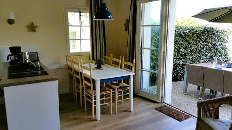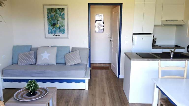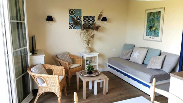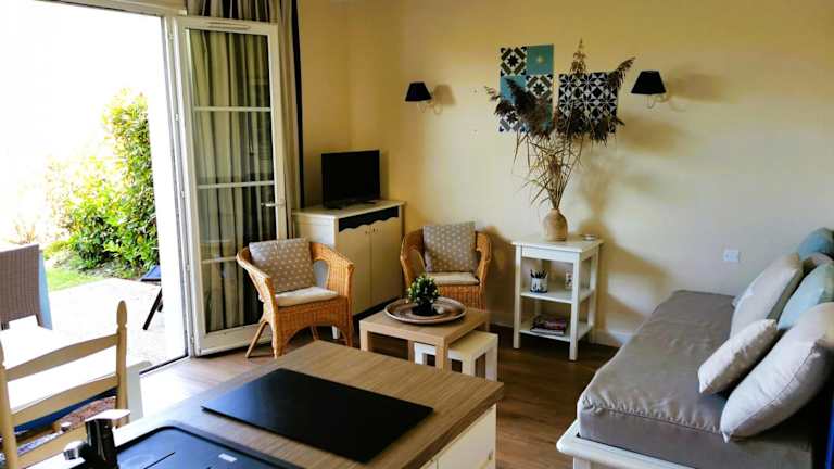 Die Unterkunft liegt ungefähr 2,5 km vom Strand Plage Du Veillon entfernt und bietet einen Gartenblick sowie eine Terrasse. In der Nähe befinden sich der Golfplatz Port Bourgenay, nur 200 m entfernt, und der Flughafen La Rochelle, welcher 91 km weit weg ist.