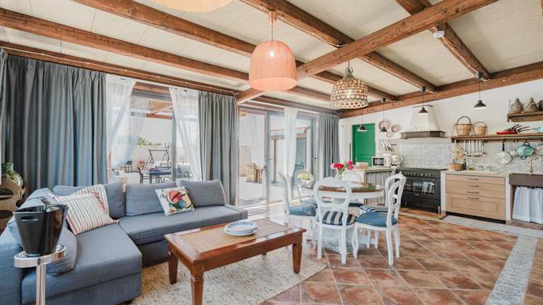 Die Villa besteht aus 2 Schlafzimmern, einem Wohnzimmer, einer voll ausgestatteten Küche mit Kühlschrank und Kaffeemaschine sowie 3 Badezimmern mit Bidet und Dusche. In der Unterkunft werden Handtücher und Bettwäsche bereitgestellt. Die Zimmer bieten einen heimeligen Aufenthalt für Gäste.