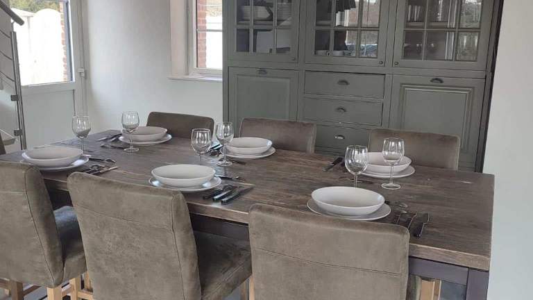 Das Ferienhaus bietet eine voll ausgestattete Küche, so dass Sie Ihre eigenen Mahlzeiten zubereiten können. In der Umgebung gibt es auch Restaurants und Cafés, in denen Sie lokale Spezialitäten genießen können.
