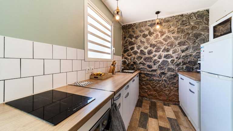 Die Ferienwohnung besteht aus einem Schlafzimmer, einem Wohnzimmer sowie einer voll ausgestatteten Küche mit Kühlschrank und Kaffeemaschine. Ein Badezimmer mit Dusche ist ebenfalls vorhanden. Handtücher und Bettwäsche werden bereitgestellt.