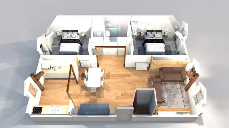 Die Ferienwohnung besteht aus zwei Schlafzimmern, einem Wohnzimmer, einer voll ausgestatteten Küche mit Kühlschrank und Kaffeemaschine sowie einem Badezimmer mit Dusche und kostenlosen Pflegeprodukten. Die Ausstattung wurde mit Blick auf Bequemlichkeit gestaltet.