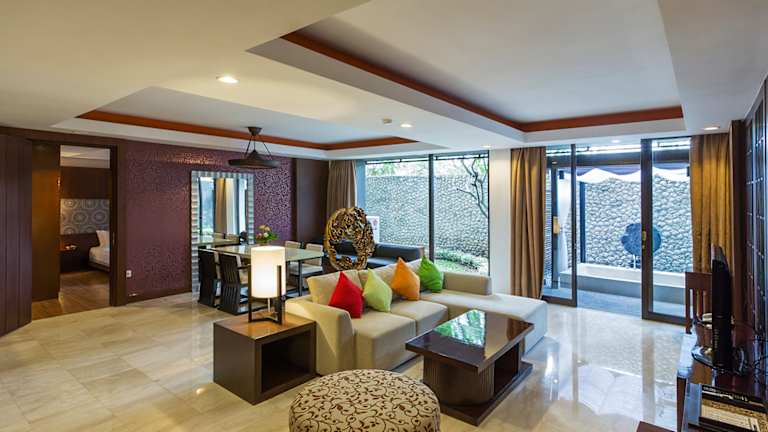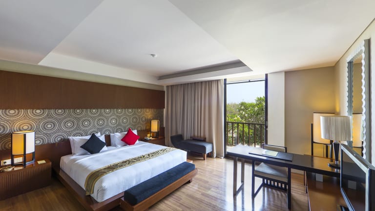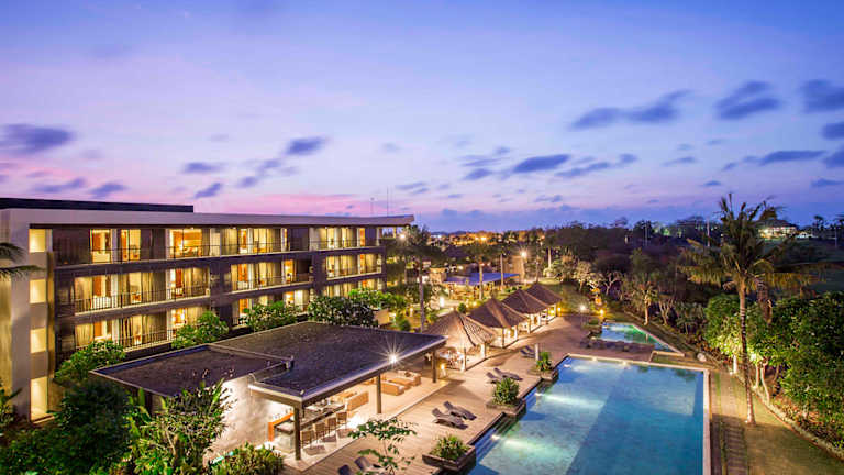 Das 5-Sterne Hotel Le Grande Suites Bali in Uluwatu ist für einen Badeurlaub geeignet gelegen. Das Hotel Le Grande Suites Bali heißt Sie mit 190 klimatisierten Hotelzimmern willkommen. Ein kostenloser Hot-Spot ist im Hotel verfügbar. Eine Bar, ein Restaurant, ein Seminarraum sowie ein Gepäckraum sind im Haus verfügbar. Die Anlage ist mit einem Geschenkeladen ausgestattet. Wäscheservice, Chemische Reinigung sowie Schuhputzservice komplettieren das Dienstleistungspaket. Freuen Sie sich auf kostenlose Parkplätze am Hotel.