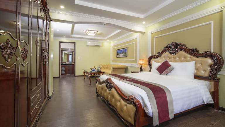 Die Zimmer im Le Indochina Hotel & Beach Da Nang City sind komfortabel und modern eingerichtet. Jedes Zimmer verfügt über Annehmlichkeiten wie Klimaanlage, Sofa, Kleiderschrank und Safe. Das eigene Badezimmer ist mit einer Badewanne oder Dusche, einem Bidet, Bademänteln, Hausschuhen und kostenfreien Pflegeprodukten ausgestattet. Die Zimmer bieten auch kostenfreies WLAN, sodass Sie immer mit Ihren Lieben in Verbindung bleiben können.