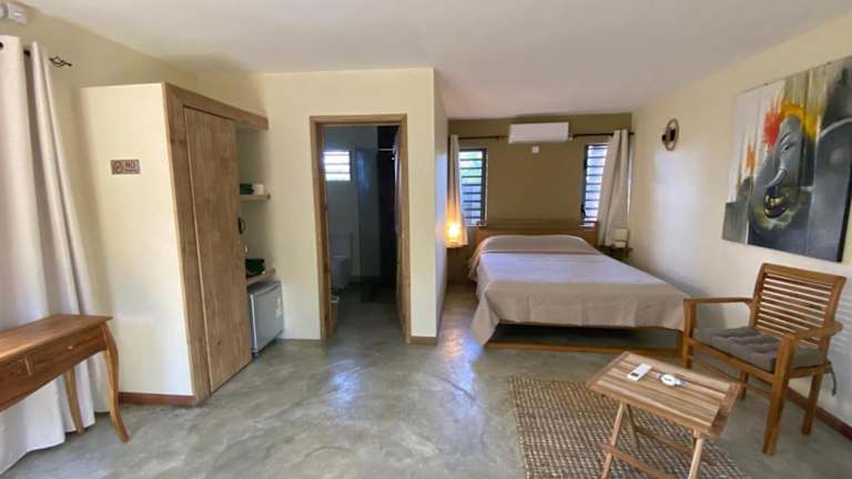 Die individuell eingerichteten Unterkünfte verfügen über einen eigenen Eingang sowie eine Terrasse oder einen Balkon mit Blick auf den Garten. Jedes Zimmer ist mit Klimaanlage, einem kleinen Sitzbereich, einem eigenen Bad mit Dusche, einem Schreibtisch und einem Safe ausgestattet.