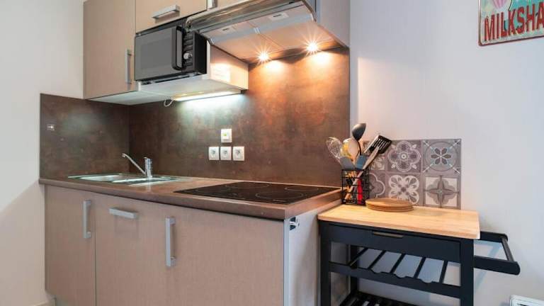 Die Ferienwohnung besteht aus einem Schlafzimmer, einem Wohnzimmer und einer voll ausgestatteten Küche mit Kühlschrank und Kaffeemaschine. Ein Badezimmer mit Badewanne und Haartrockner ist ebenfalls vorhanden. Handtücher und Bettwäsche werden zur Verfügung gestellt.