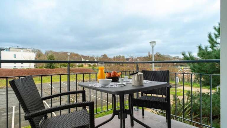 Die Unterkunft befindet sich in Concarneau in der Region Bretagne, nur 100 m vom Strand Plage Sables Blancs entfernt. Weitere Strände wie der Plage de Cornouaille und der Plage Kernous sind ebenfalls in der Nähe.