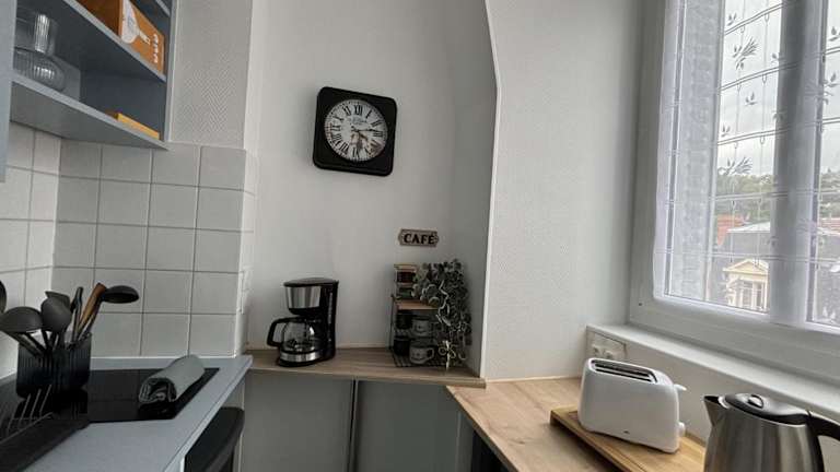 Die Unterkunft ist mit einer Küchenzeile ausgestattet, die einen Kühlschrank, eine Mikrowelle, eine Herdplatte, eine Kaffeemaschine sowie einen Wasserkocher umfasst. Es sind keine speziellen Verpflegungsmöglichkeiten angeboten.