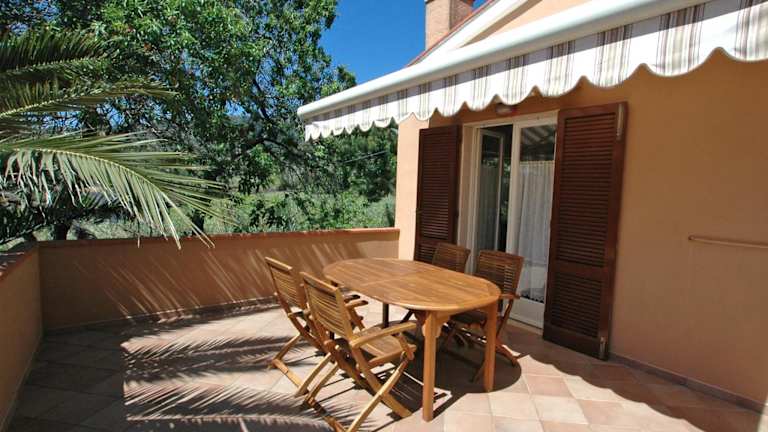 Die Ferienwohnung umfasst zwei Schlafzimmer, ein Wohnzimmer mit TV, eine gut ausgestattete Küchenzeile sowie zwei Badezimmer mit Bidet und Dusche. Die Terrasse bietet einen schönen Blick auf den Garten und zusätzliche Annehmlichkeiten wie Handtücher und Bettwäsche können gegen Aufpreis bereitgestellt werden.