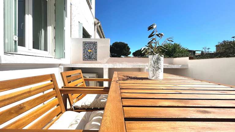 LE MÉDITERRANÉEN - Terrasse - Parking bietet Übernachtungsmöglichkeiten in einer Ferienwohnung mit Veranda oder Patio und kostenlosem Wifi. Die Unterkunft verfügt zudem über einen kostenlosen Privatparkplatz.