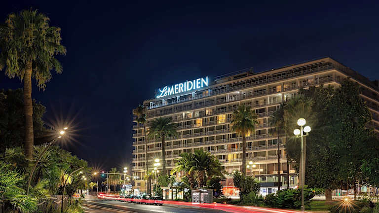 Le Meridien Nice bietet insgesamt 318 Zimmer, 15 Junior-Suiten und 17 Suiten auf 10 Etagen. Zur Ausstattung des Hotels zählen eine 24-Stunden-Rezeption, ein Garten, Kongressräume, ein Fitnesscenter sowie diverse andere Annehmlichkeiten wie eine Autovermietung und ein medizinischer Service. Das Haus ist rollstuhlgerecht und bietet eine Vielzahl von Dienstleistungen, darunter einen Babysitterservice und ein Wäscheservice. Das Hotel verfügt über einen Aussenpool sowie einen Wellnessbereich mit Spa und Hammam.