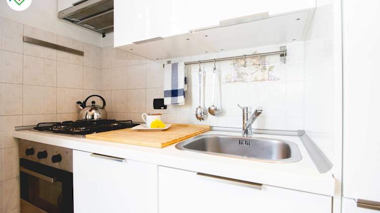 Die Ferienwohnung verfügt über ein Schlafzimmer, ein Wohnzimmer sowie eine voll ausgestattete Küchenzeile mit Kühlschrank und Kaffeemaschine. Zudem gibt es ein Badezimmer mit Bidet und Dusche. Handtücher und Bettwäsche werden bereitgestellt.