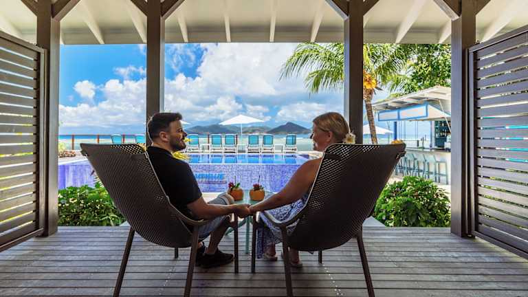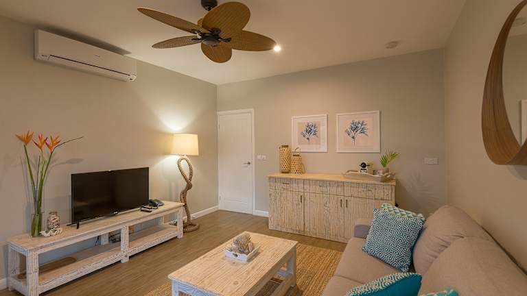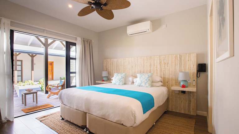 Die klimatisierten Zimmer verfügen über eine Veranda oder Terrasse, von der aus die Gäste den Meerblick geniessen können. Ausstattung umfasst entweder ein Kingsize-Bett oder ein Sofabett, einen Safe, eine Minibar und eine Tee-/Kaffeemaschine. Im Badezimmer sind Dusche und Badewanne vorhanden, und die Unterkünfte bieten zudem einen TV und kostenfreies Wifi.