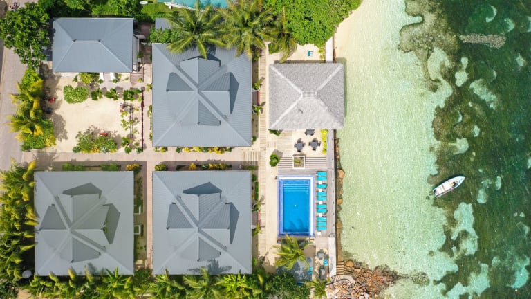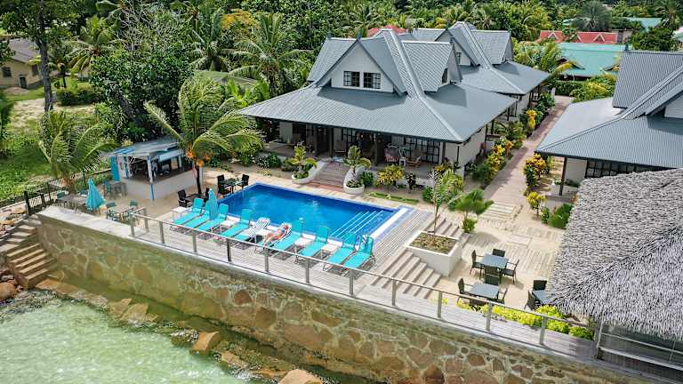 Das Hotel befindet sich auf der Insel La Digue, direkt am Sandstrand. Die Umgebung kann mit dem Velo erkundet werden. Nahegelegene Strände sind Anse La Réunion, Anse Severe und Anse Source d'Argent.