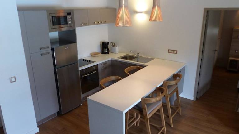 Jede Wohneinheit ist mit einer voll ausgestatteten Küche mit Kühlschrank und Ofen eingerichtet. Die Zimmer verfügen über einen Safe, Satelliten Flachbild-TV, Bügelmöglichkeiten, einen Schreibtisch und einen Sitzbereich mit Sofa. Die Badezimmer sind voll ausgestattet mit Dusche und Haartrockner.