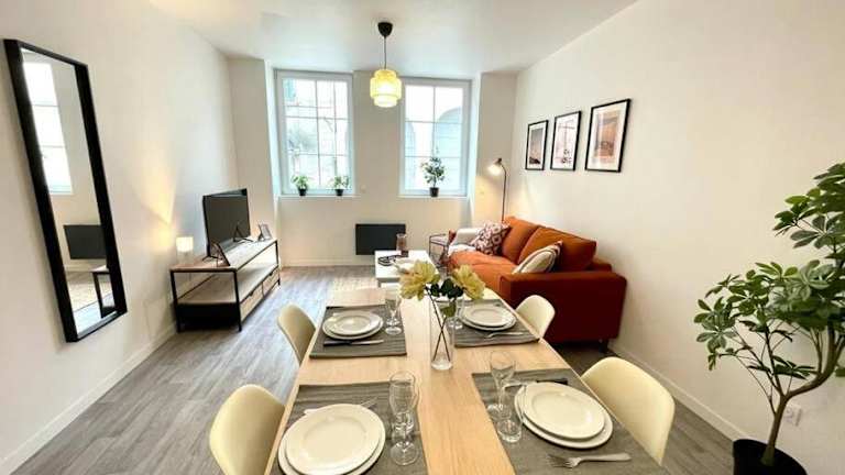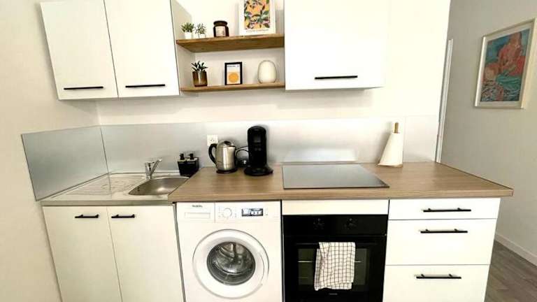 Die Wohnung verfügt über ein Schlafzimmer, ein Wohnzimmer sowie eine gut ausgestattete Küche mit Kühlschrank und Ofen. Handtücher und Bettwäsche werden bereitgestellt, und die Ferienwohnung ist eine Nichtraucherunterkunft.