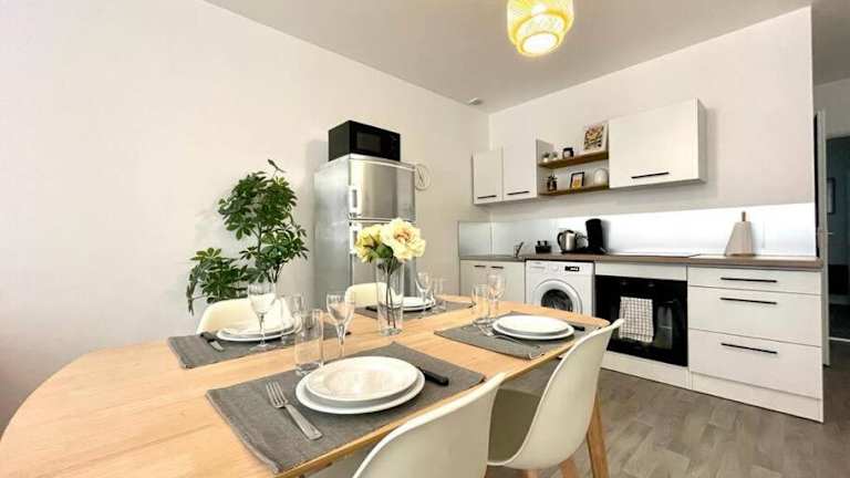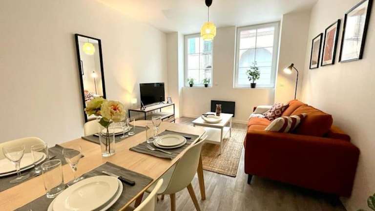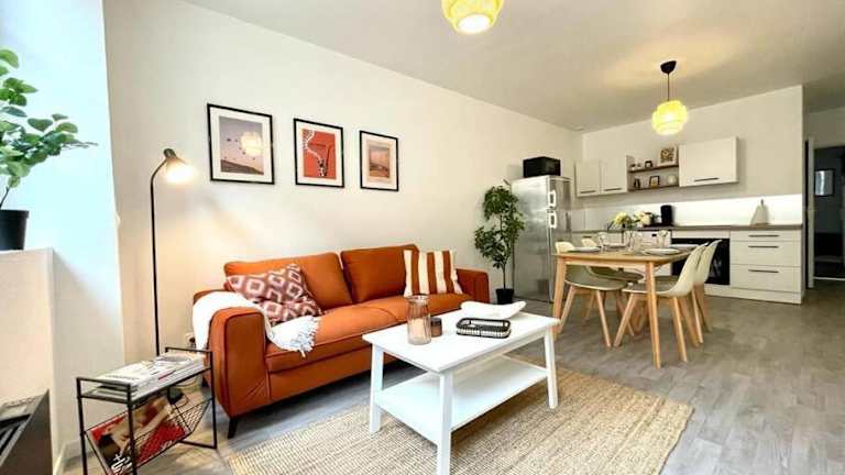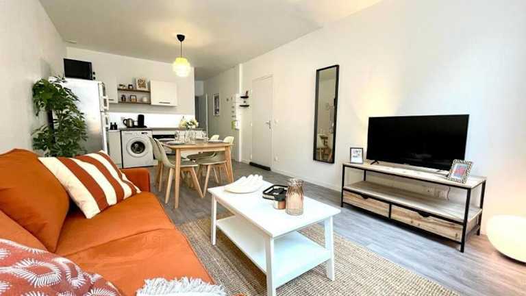 Le Patio - Rénové et Proche lac bietet eine heimelige Ferienwohnung mit Terrasse und modernem Ambiente. Die Unterkunft ist ideal für ruhige Ferien und befindet sich in der Nähe eines malerischen Sees.