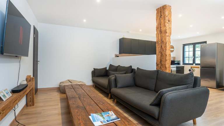 Die Ferienwohnung bietet einladende 4 Schlafzimmer und 2 Badezimmer, ausgestattet mit Bettwäsche und Handtüchern. Zu den Annehmlichkeiten zählen ein Flachbild-TV sowie eine voll ausgestattete Küche. Die schallisolierten Zimmer sorgen für eine angenehme Bequemlichkeit während des Aufenthalts.