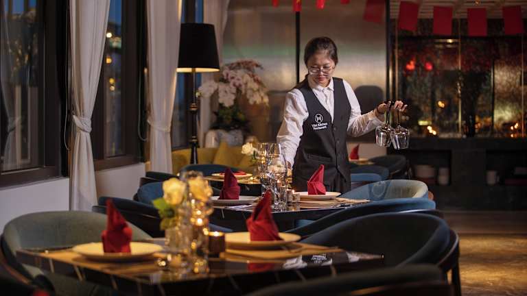 Im Restaurant des Le Premier Hotel & Rooftop Bar wird eine abwechslungsreiche Auswahl an Speisen geboten, dazu gehören amerikanische, chinesische und koreanische Küche. Vegetarische, vegane und glutenfreie Optionen sind auf Anfrage erhältlich. Bei der Buchung gibt es die Möglichkeit, besondere Wünsche zu äußern hinsichtlich der Speisen.