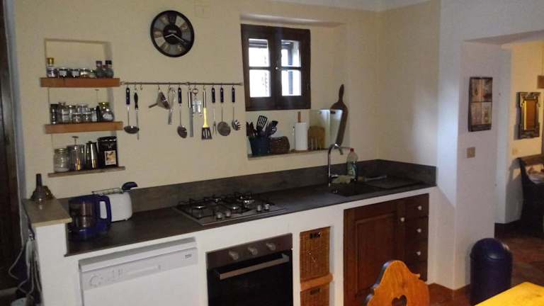 Die Ferienwohnung ist mit einer gut ausgestatteten Küche mit Kühlschrank und Geschirrspüler versehen, sodass Gäste ihre eigenen Mahlzeiten zubereiten können. Zudem gibt es die Möglichkeit, im Garten zu grillen.