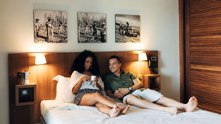 Die Zimmer sind klimatisiert und verfügen über eine Terrasse, von der aus Gäste einen herrlichen Blick aufs Meer geniessen können. Zur Zimmerausstattung gehören ein Schreibtisch, ein TV-Gerät mit Kabelanschluss, ein Telefon sowie ein kostenloser Wifi-Zugang. In den Badezimmern sind Kosmetikartikel vorhanden. Verfügbare Zimmertypen sind Familienzimmer, Nichtraucherzimmer und rollstuhlgerechte Zimmer mit barrierefreiem Badezimmer.